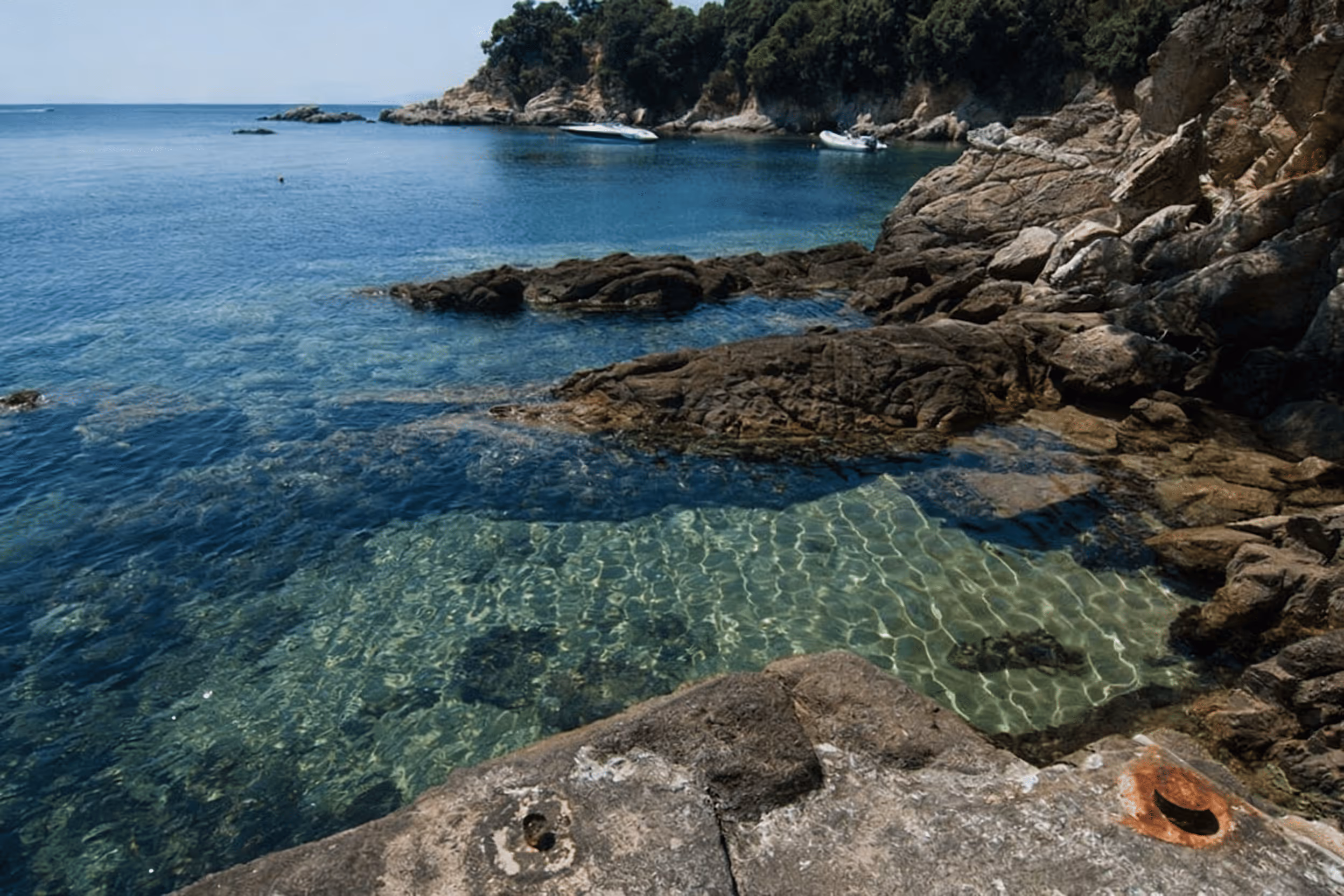 A small romantic room at the rear of the main building is ideal for children. A separate natural stone guesthouse offers a romantic bedroom with bathroom, outdoor shower, sun loungers, and steps leading directly down to the sea.
