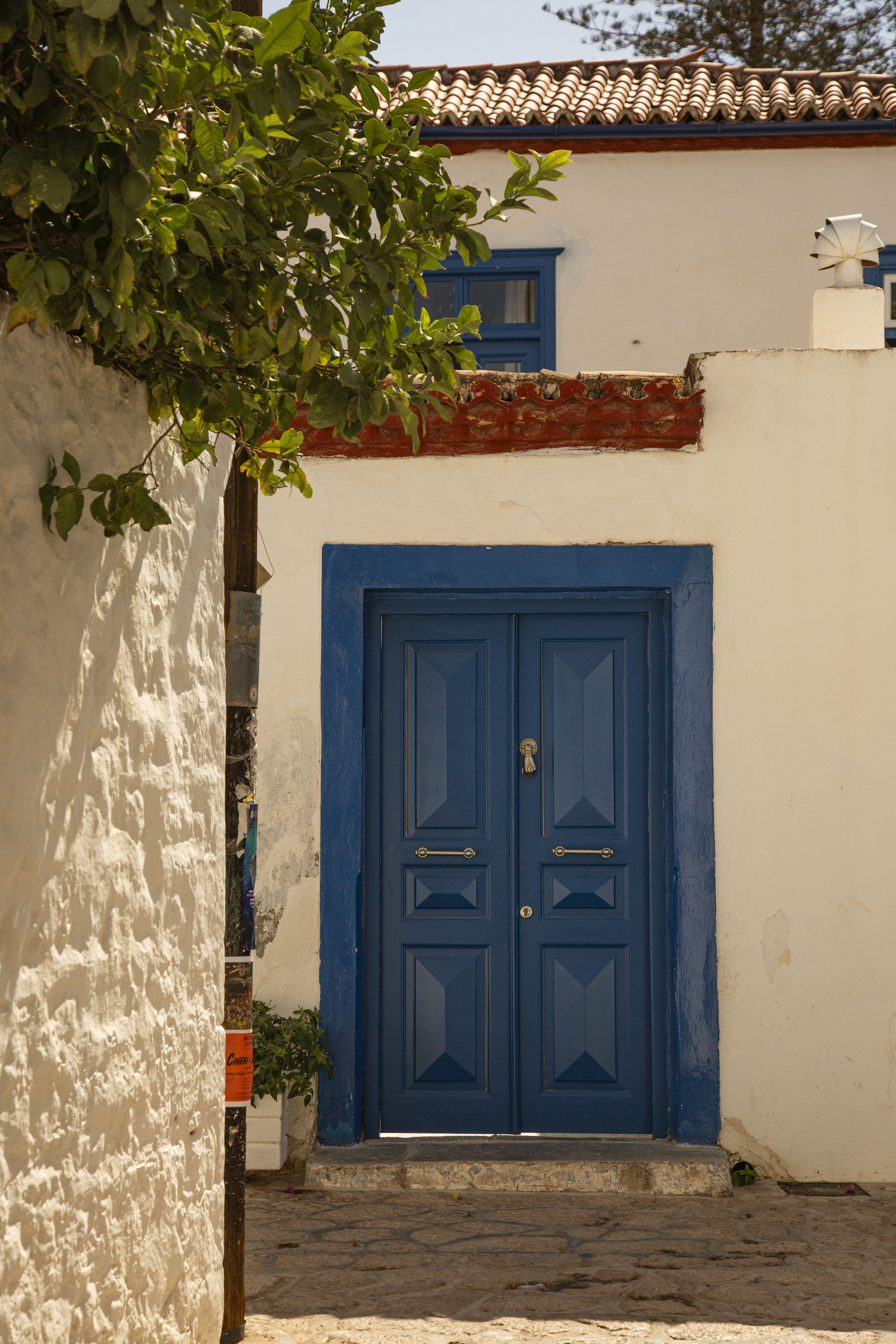 The house sits on the corner of one of Hydra’s most iconic squares, where Leonard Cohen often spent time under the shade of the great tree at the taverna.