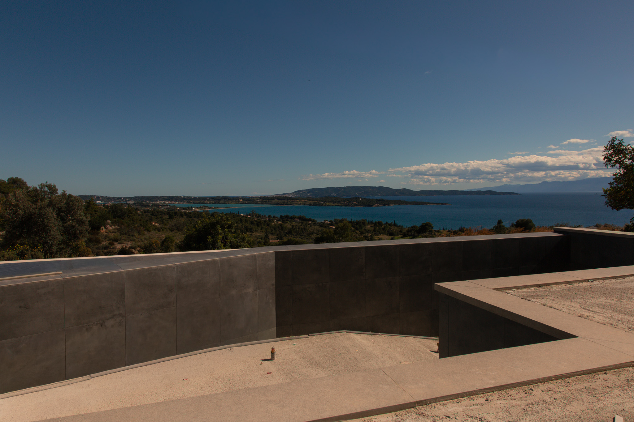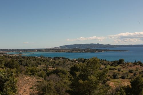 The stretch of coastline between around Porto Heli is not accidental. The villas here are architectural, the roads are quiet, and the sea is always in view. This is not a resort area, there are no tourist strips, no beach bars playing music until two at night. The people who live here chose it for exactly that reason. The neighbourhood directly surrounding this property is residential in the proper sense: a small collection of design- forward villas. You are not alone, but you are not crowded. Porto Heli itself is five minutes away, a harbour town with good tavernas, a small supermarket, morning coffee on the water, and direct ferry connections to Spetses and beyond. Ermioni is twenty minutes in the other direction: a proper Greek town with a Thursday market and a harbour that doubles in charm at dusk. Inland from the water, the hills are covered in pine and olive. The light in the late afternoon turns everything amber.